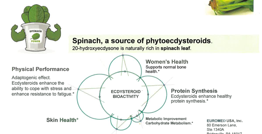 Phytoecdysteroids in spinach support its defense system. PEs are potent anabolic compounds that support human health.