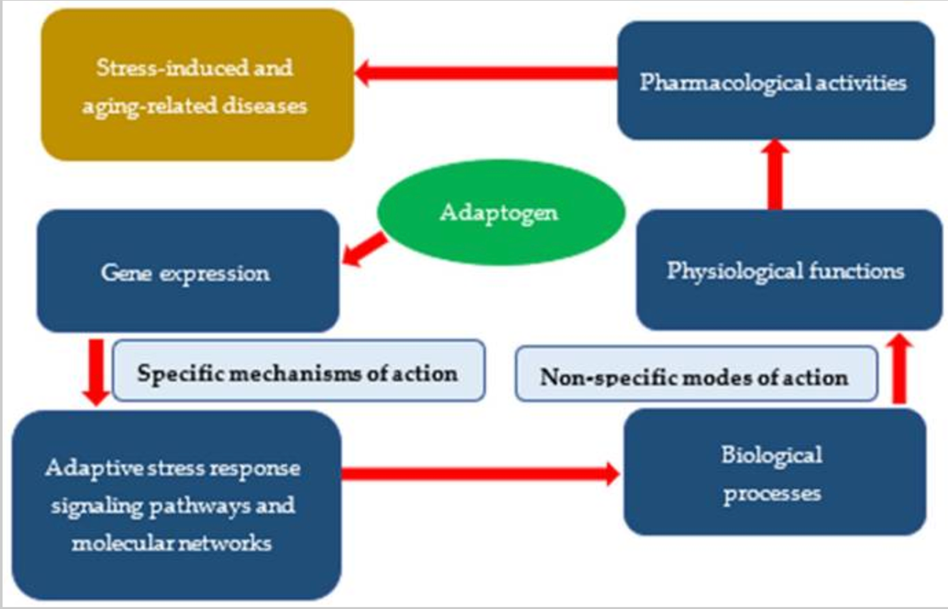 Overall, adaptogens trigger pleiotropic genes, molecular mechanisms, and cellular signaling pathways that mediate adaptive and defense responses, resulting in multitarget modes of action simultaneously and, therefore, in nonspecific pleiotropic pharmacological activity.