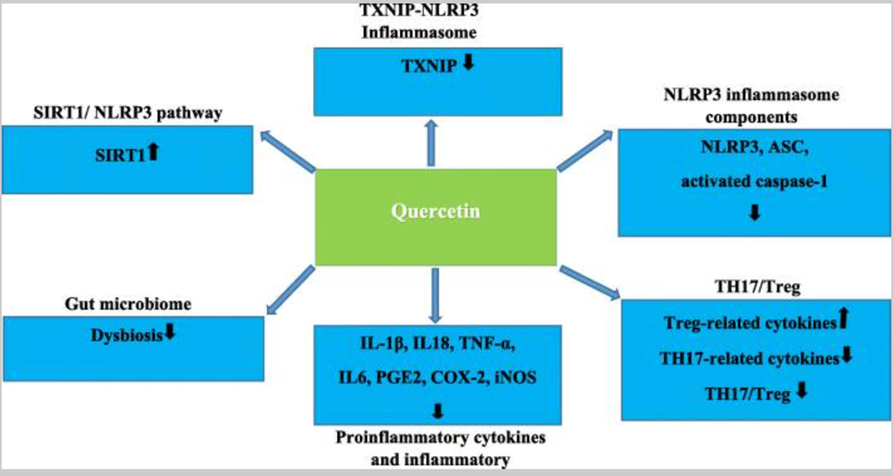 [5] Saeedi-Boroujeni A, Mahmoudian-Sani MR. Anti-inflammatory potential of Quercetin in COVID-19 treatment. J Inflamm (Lond). 2021 Jan 28;18(1):3. doi: 10.1186/s12950-021-00268-6. PMID: 33509217; PMCID: PMC7840793.