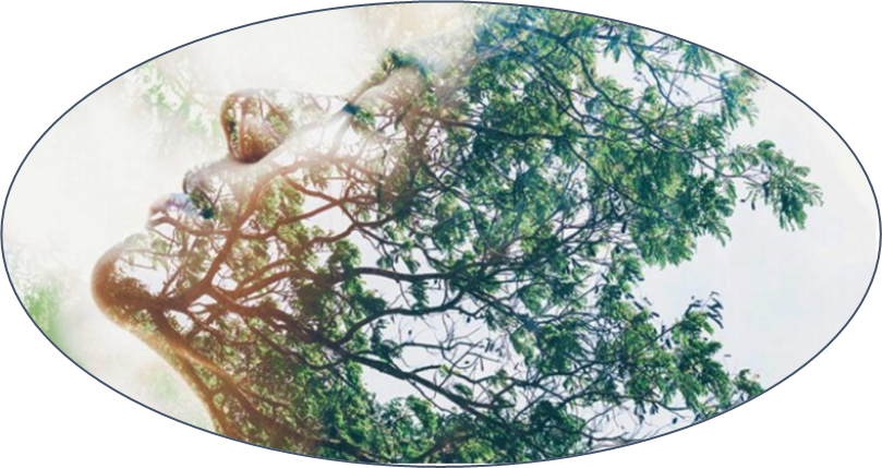Woman's face in a tree looking upward
